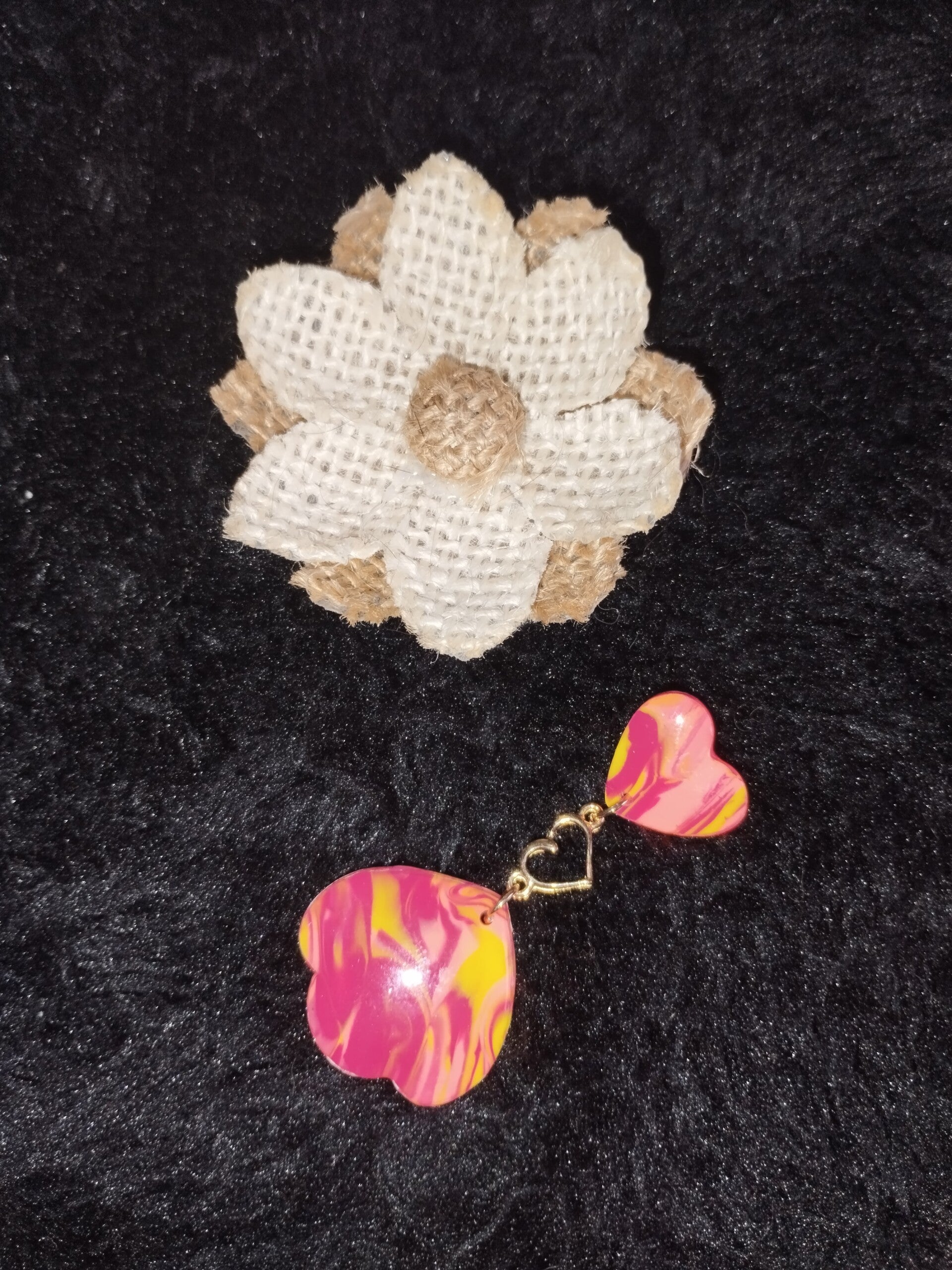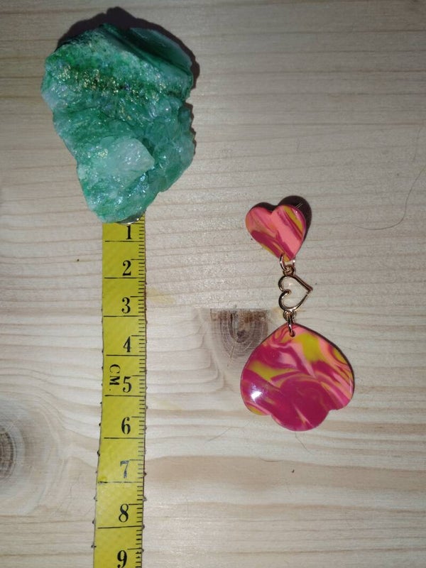Jolie paire de boucles d'oreilles avec un trio de couleurs qui tire sur le coucher de soleil. Attaches dorées