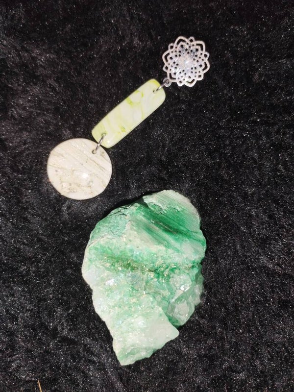 Paire de boucles d'oreilles, attaches argentées , pâte polymère blanche avec décoration a la peinture acrylique