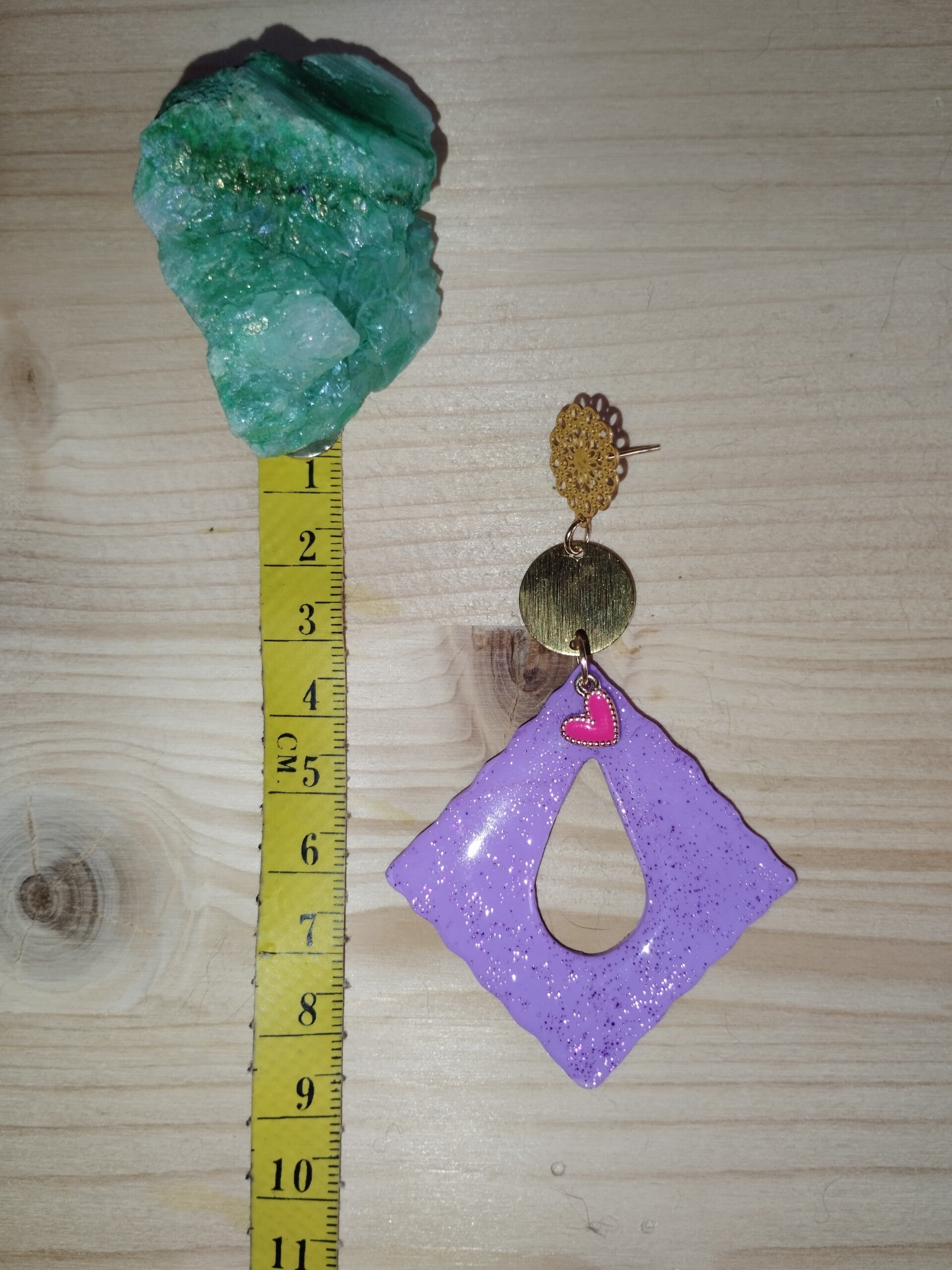 Paire de boucles d'oreilles, attaches dorées, accessoirisé d'un cerclé doré et d'un pti coeur rose fushia