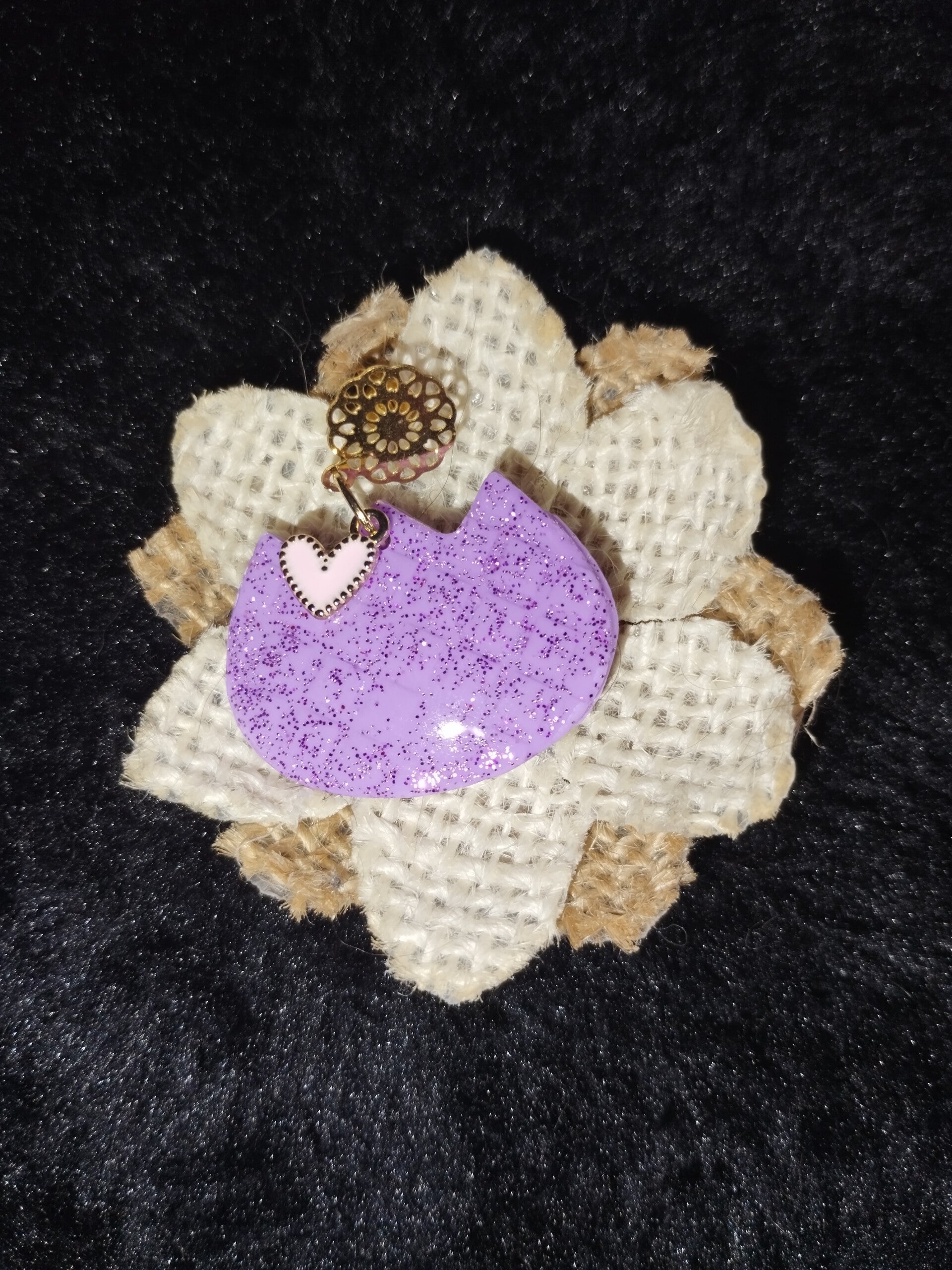 Paire de boucles d'oreilles, attaches dorées, accessoirisé d'un pti coeur rose pâle