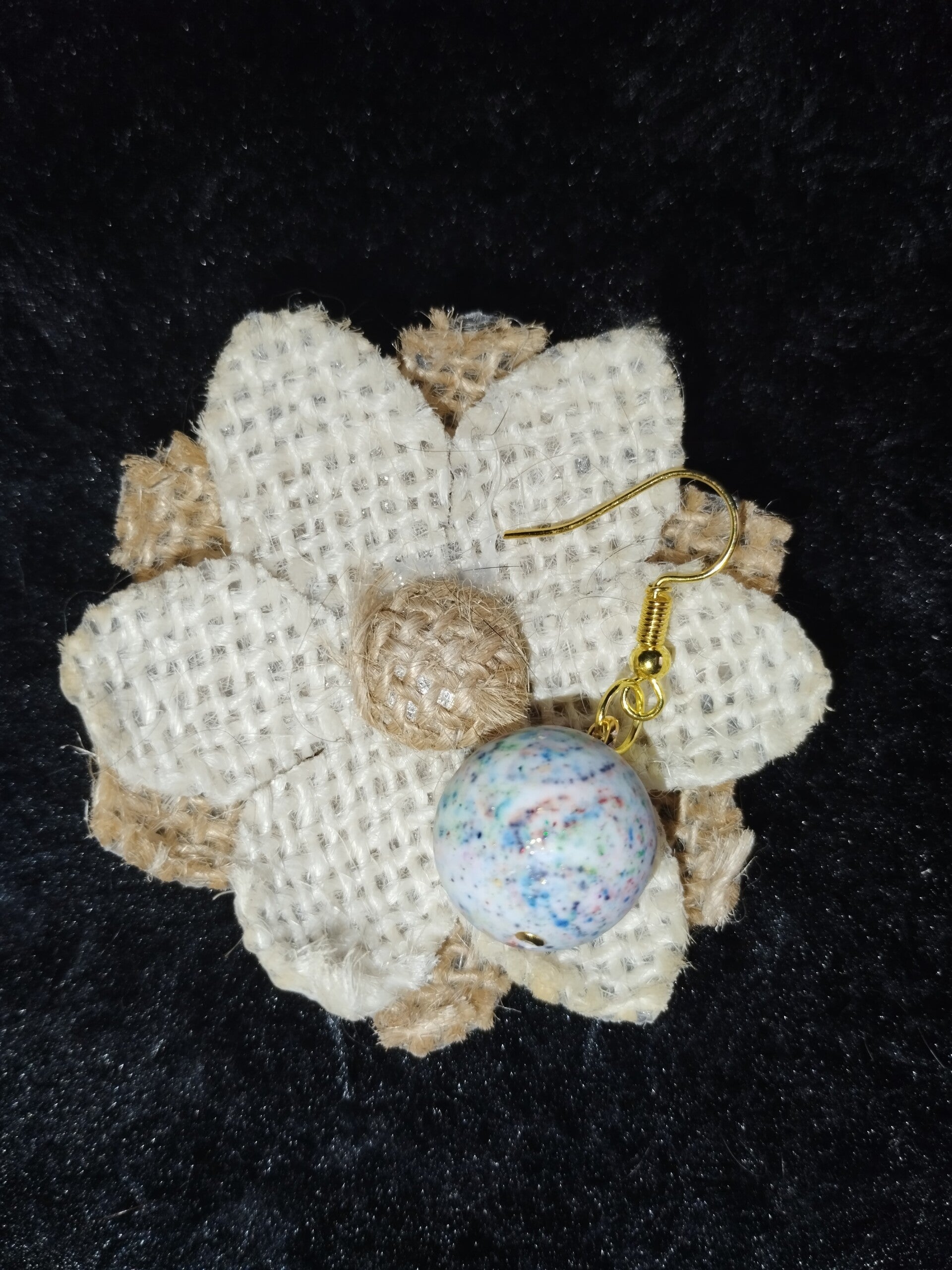 Paire de boucles d'oreilles boules blanche avec feuille multicolores avec attaches dorées