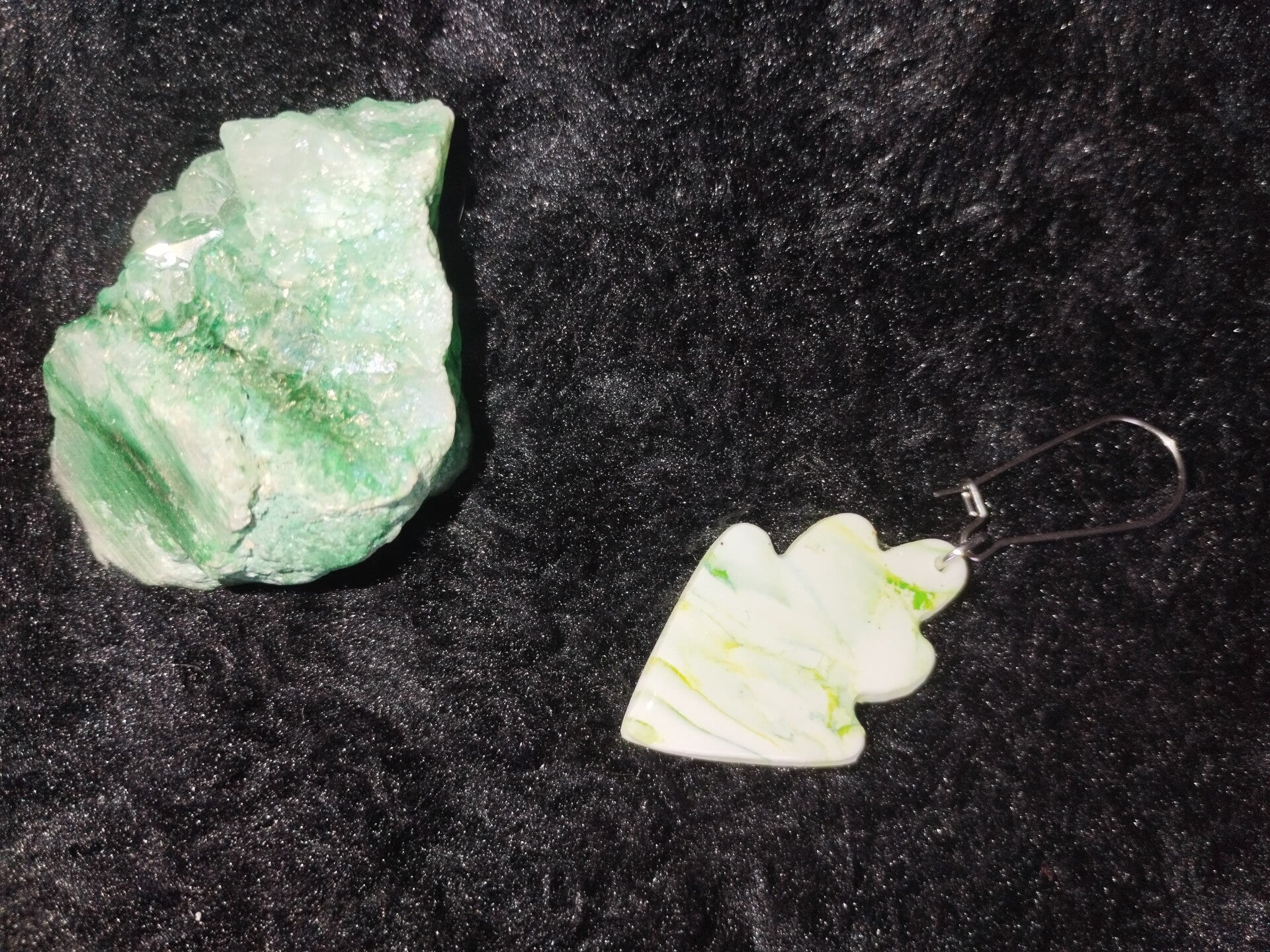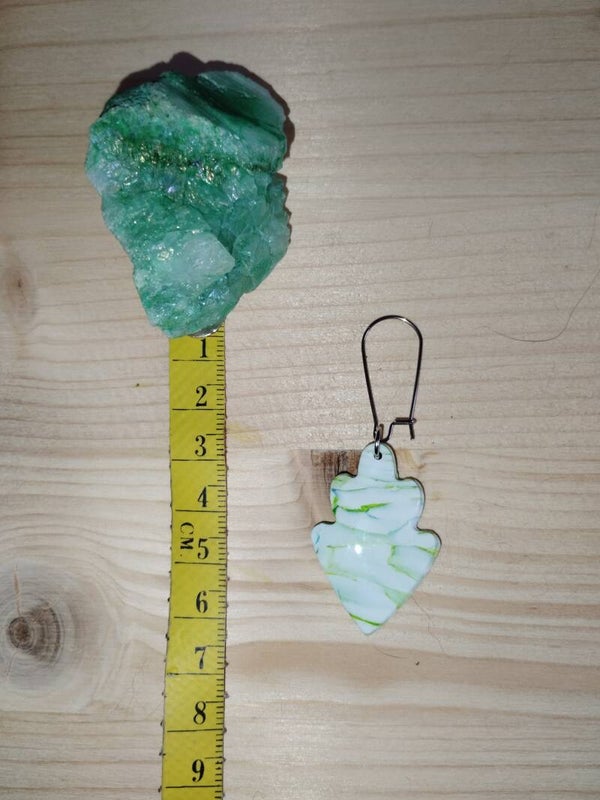 Paire de boucles d'oreilles, attaches argentées, mélange de pâte polymère blanche et de peinture acrylique.