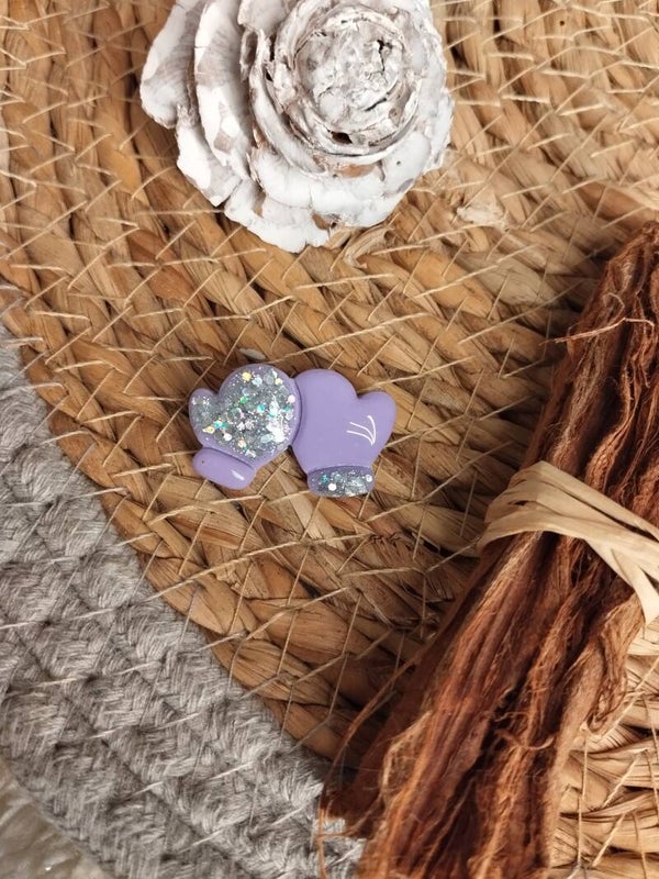 Broche en forme de mouflettes dispo de différentes couleurs. Avec trois styles de paillettes différents argent or et blanc à reflets.