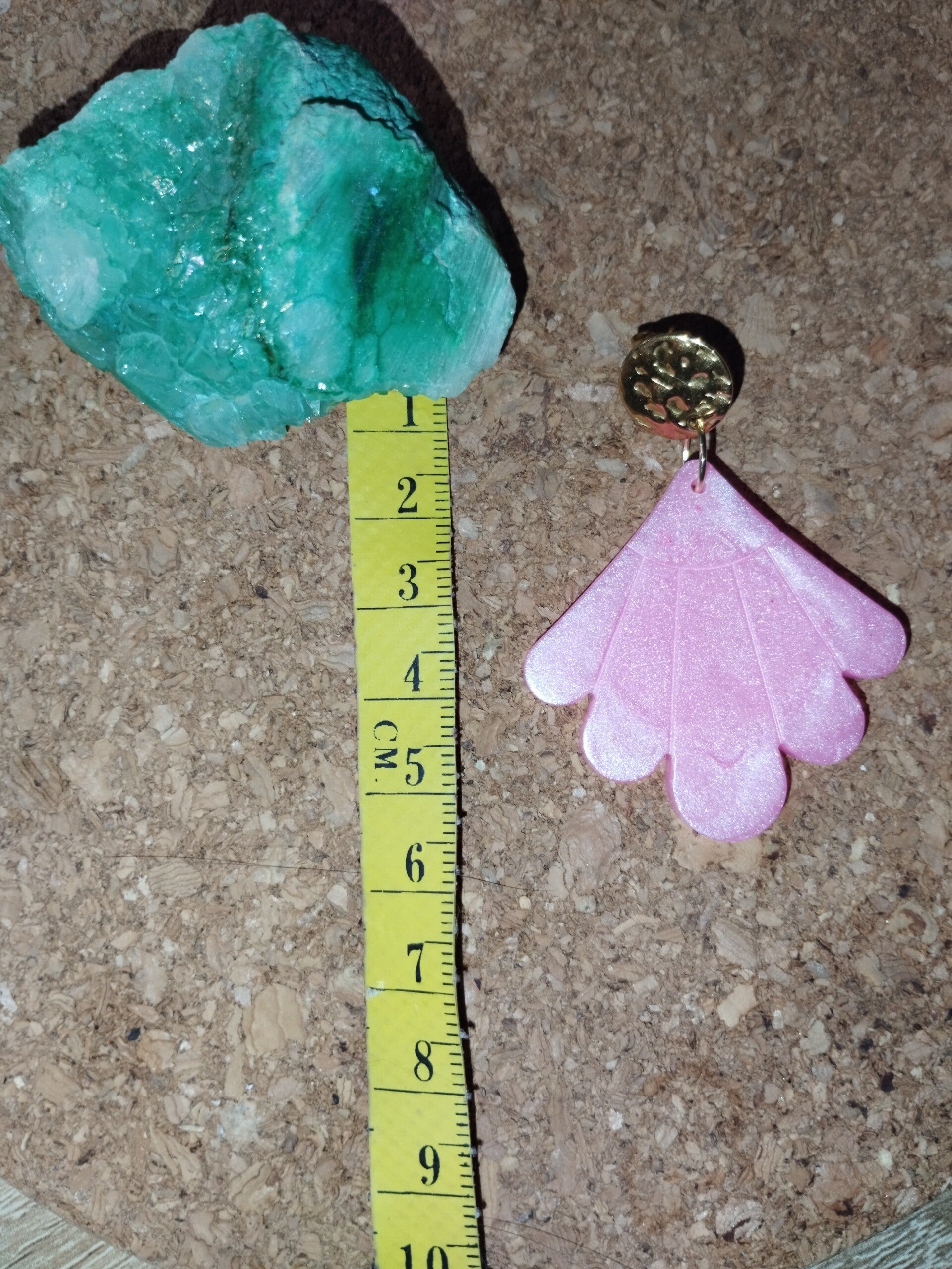 Paire de boucles attaches dorées 100% en résine avec poudre colorante rose