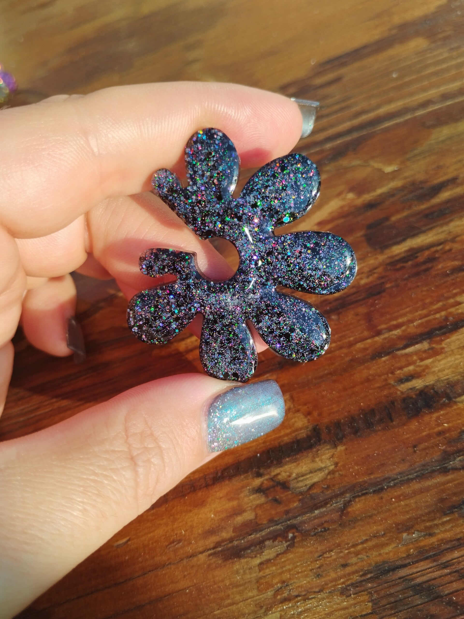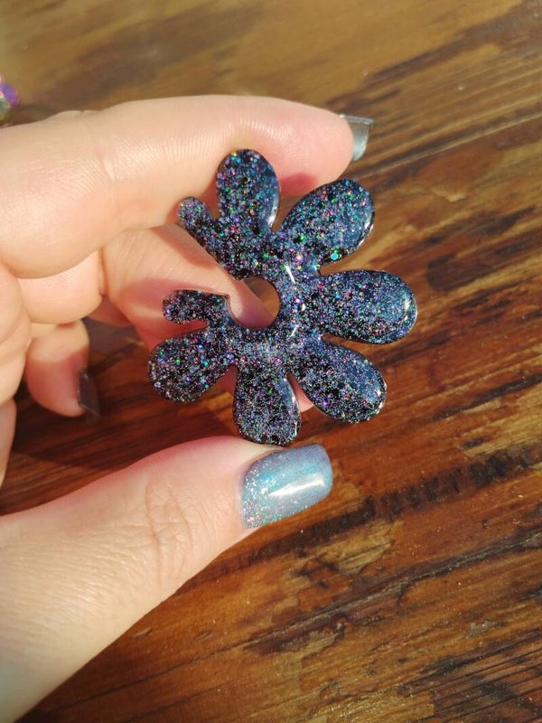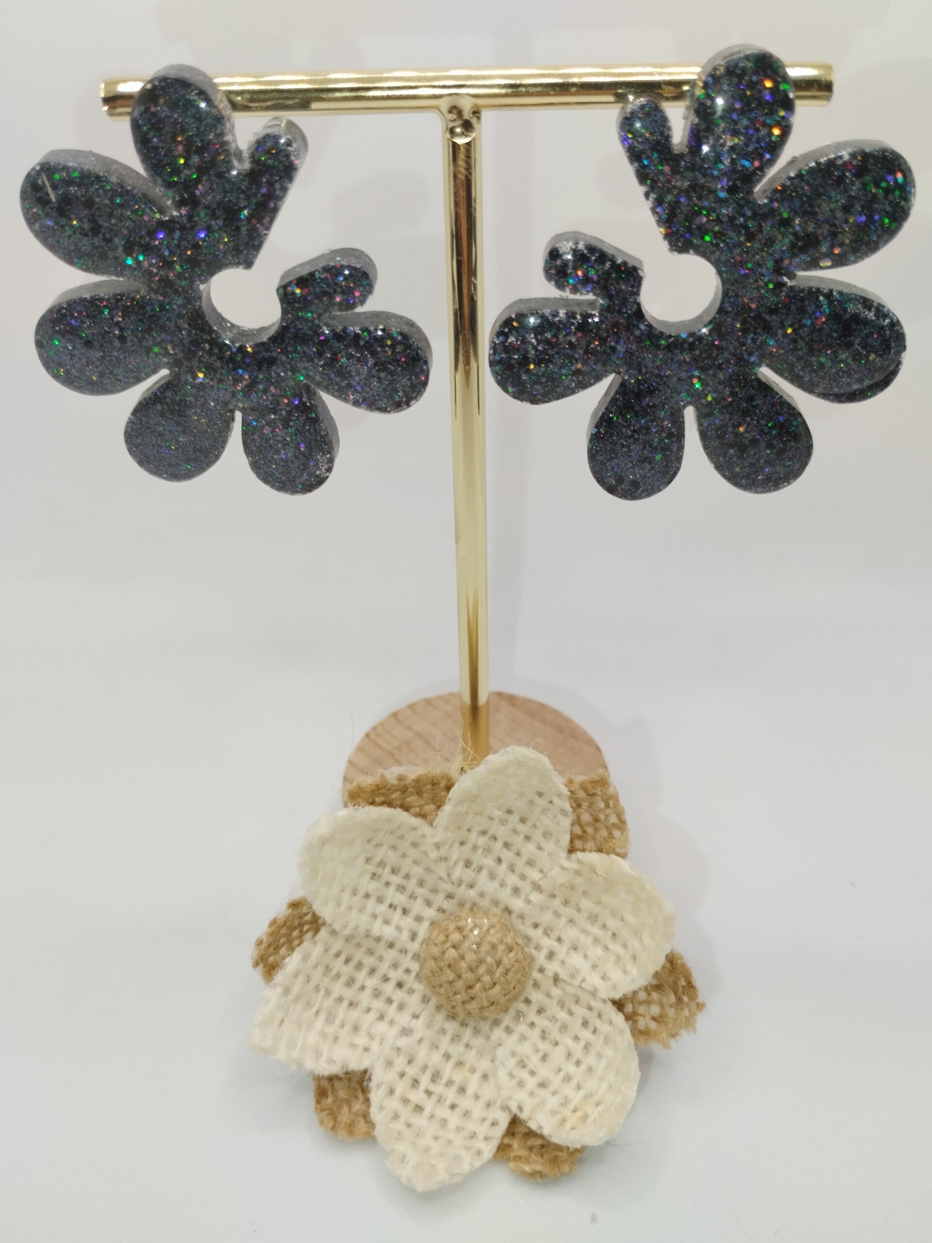 Paire de boucles, petit clou a l'arrière, 100% résine en FULL GLITTER gris 🖤🖤🖤