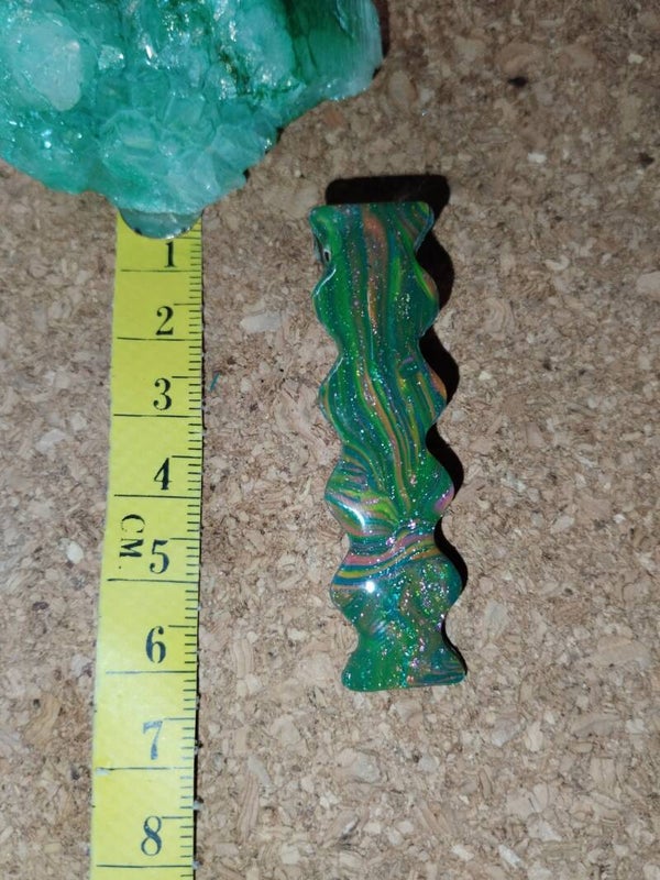 Barrette de 4,5cm avec forme en pâte polymère multicolore le dessus.
