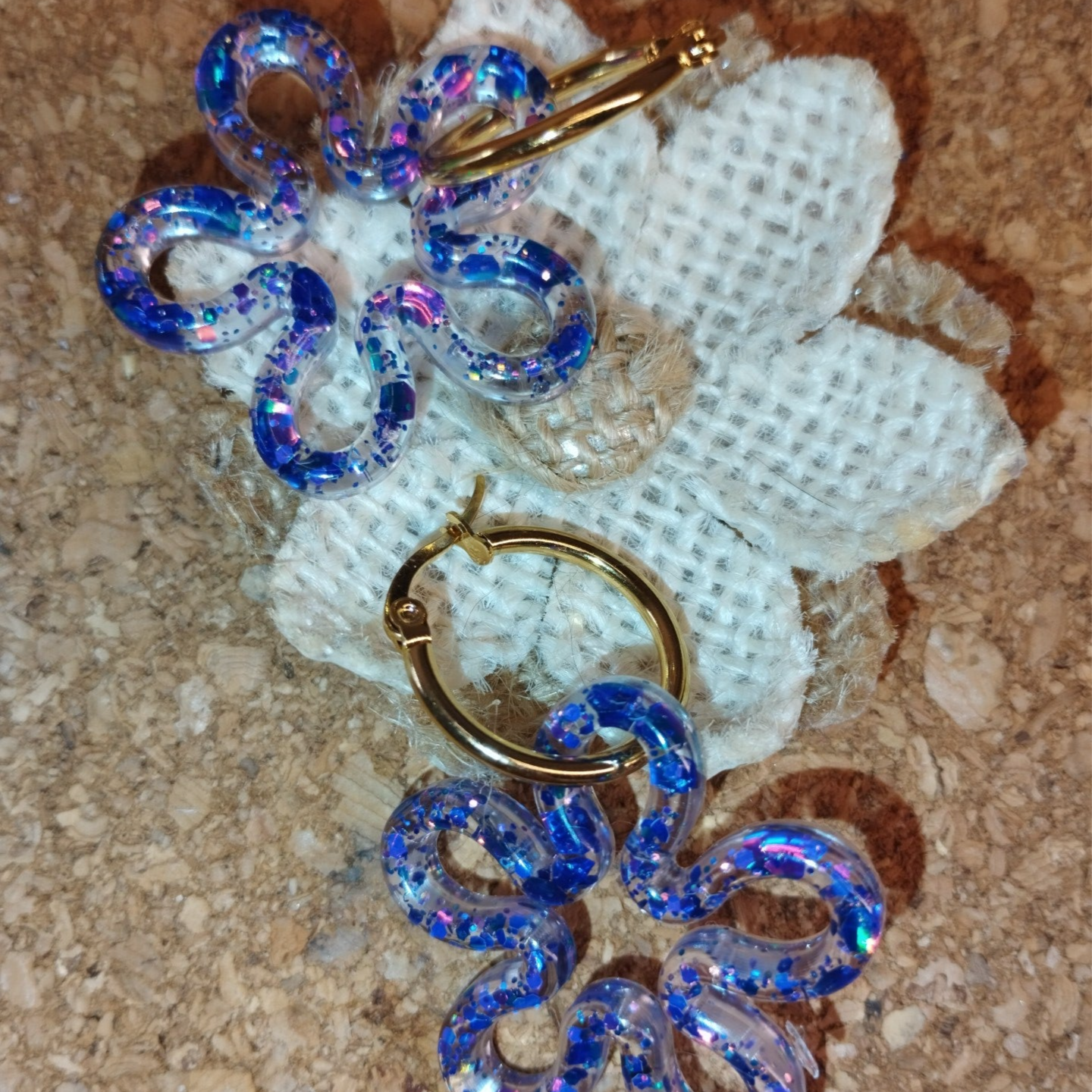 Creoles dorées ou argentées, 2 ou 3 cm de diamètre avec une fleur Ancolie 100% résine en FULL GLITTER