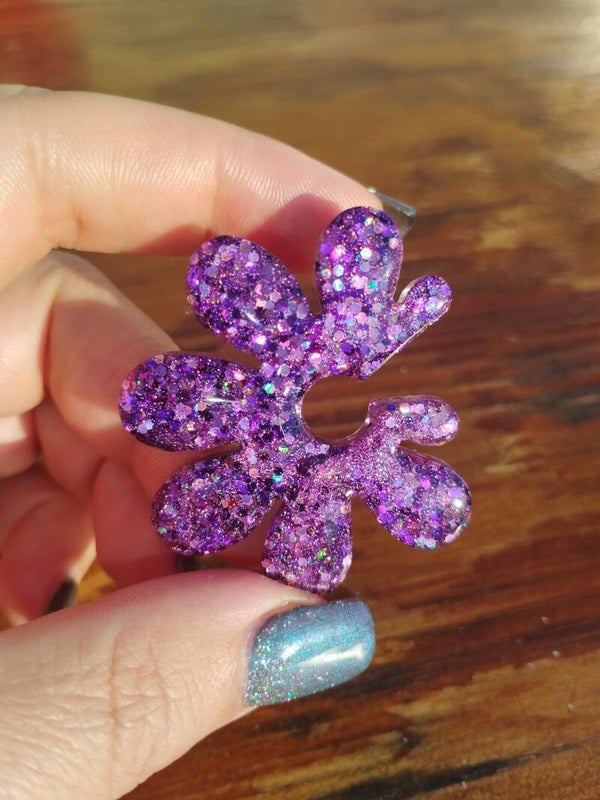 Jolie paire de boucles en forme de fleurs en résine et 100% FULL GLITTER