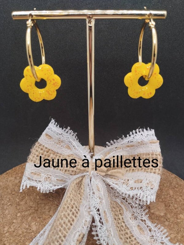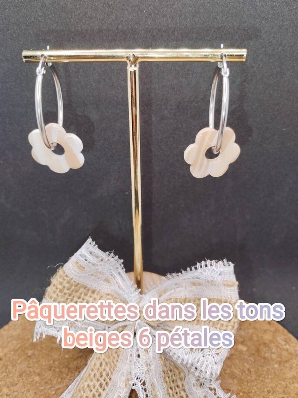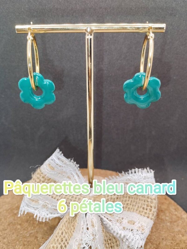 Paire de jolies pâquerettes en pâte polymère et recouverte de résine UV.