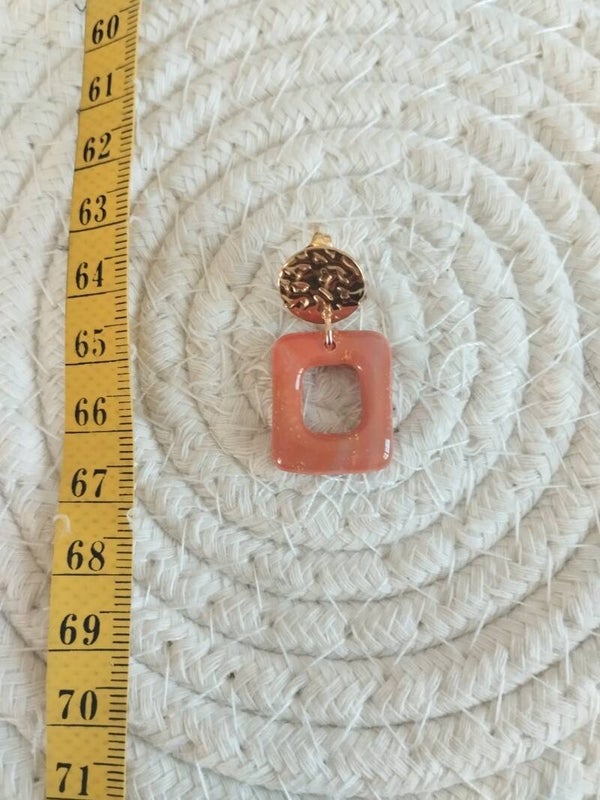 Jolie paire de boucles d'oreilles de forme carré aux couleurs automnales avec un peu de feuille d'or.