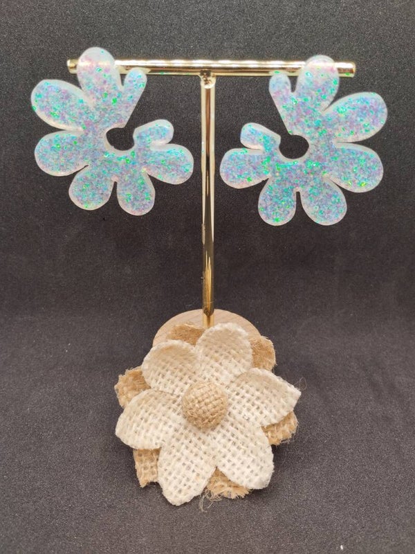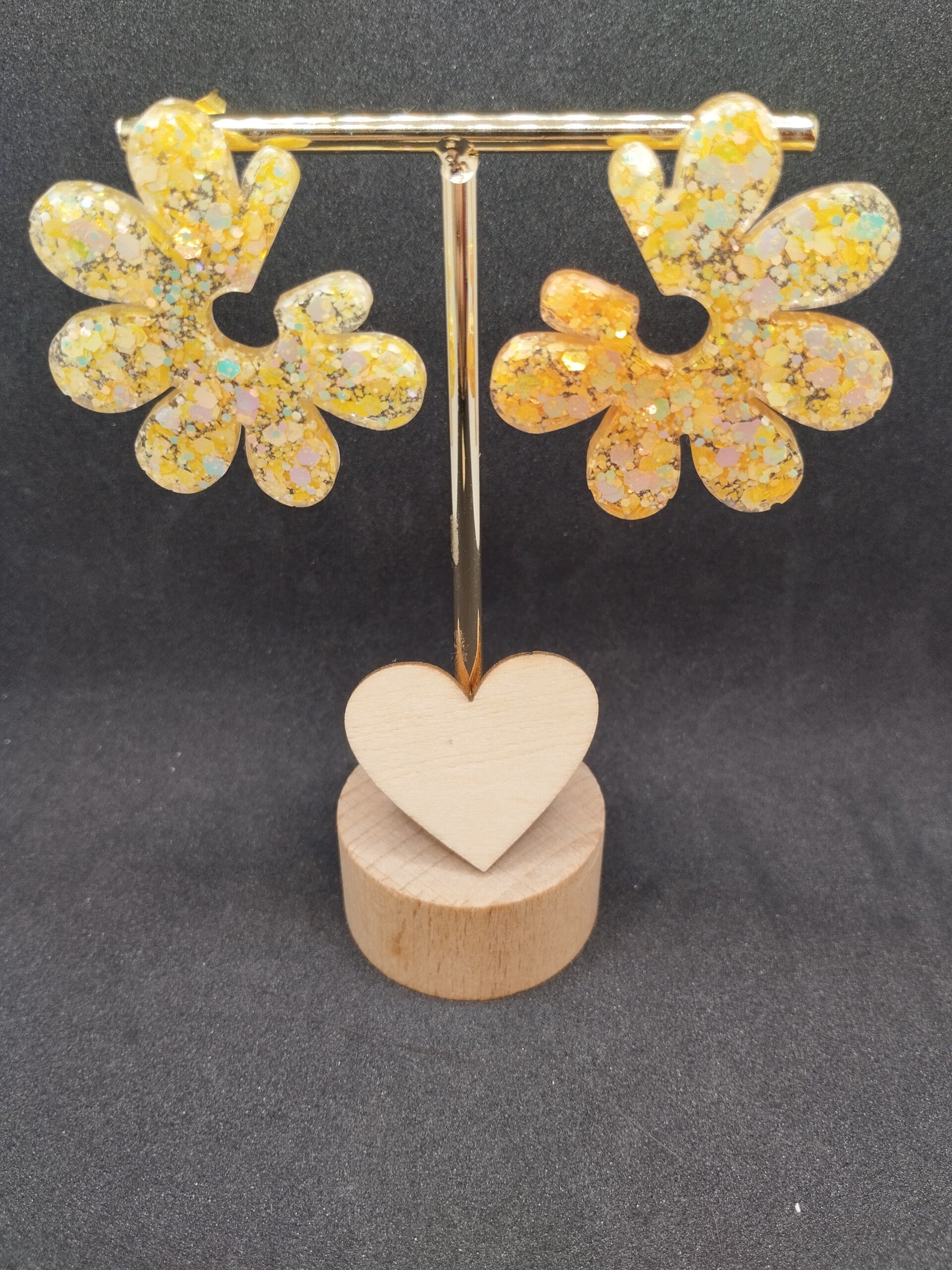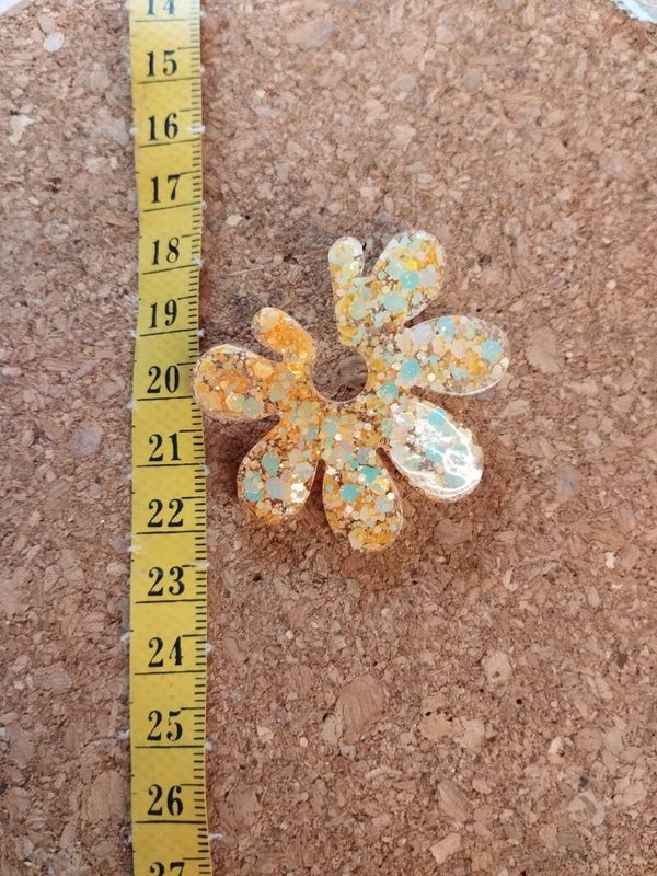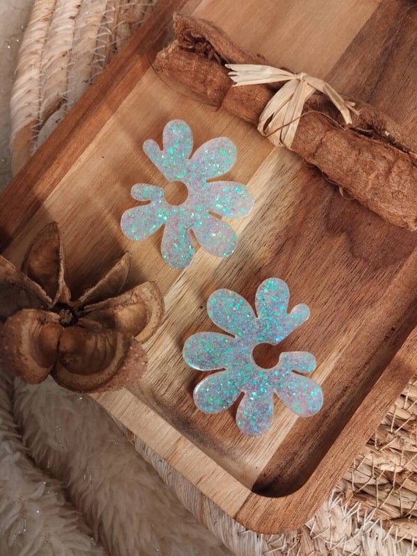 Jolie fleur en paillettes ou poudre colorante 100% résine en avec petits clous doré ou argenté
