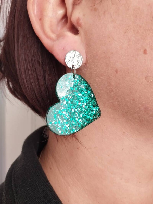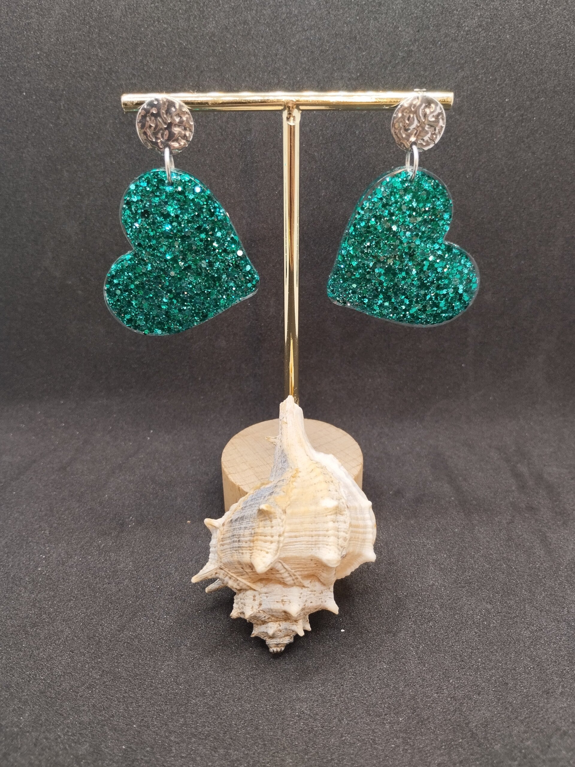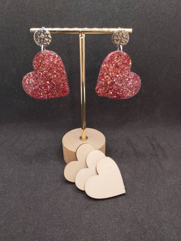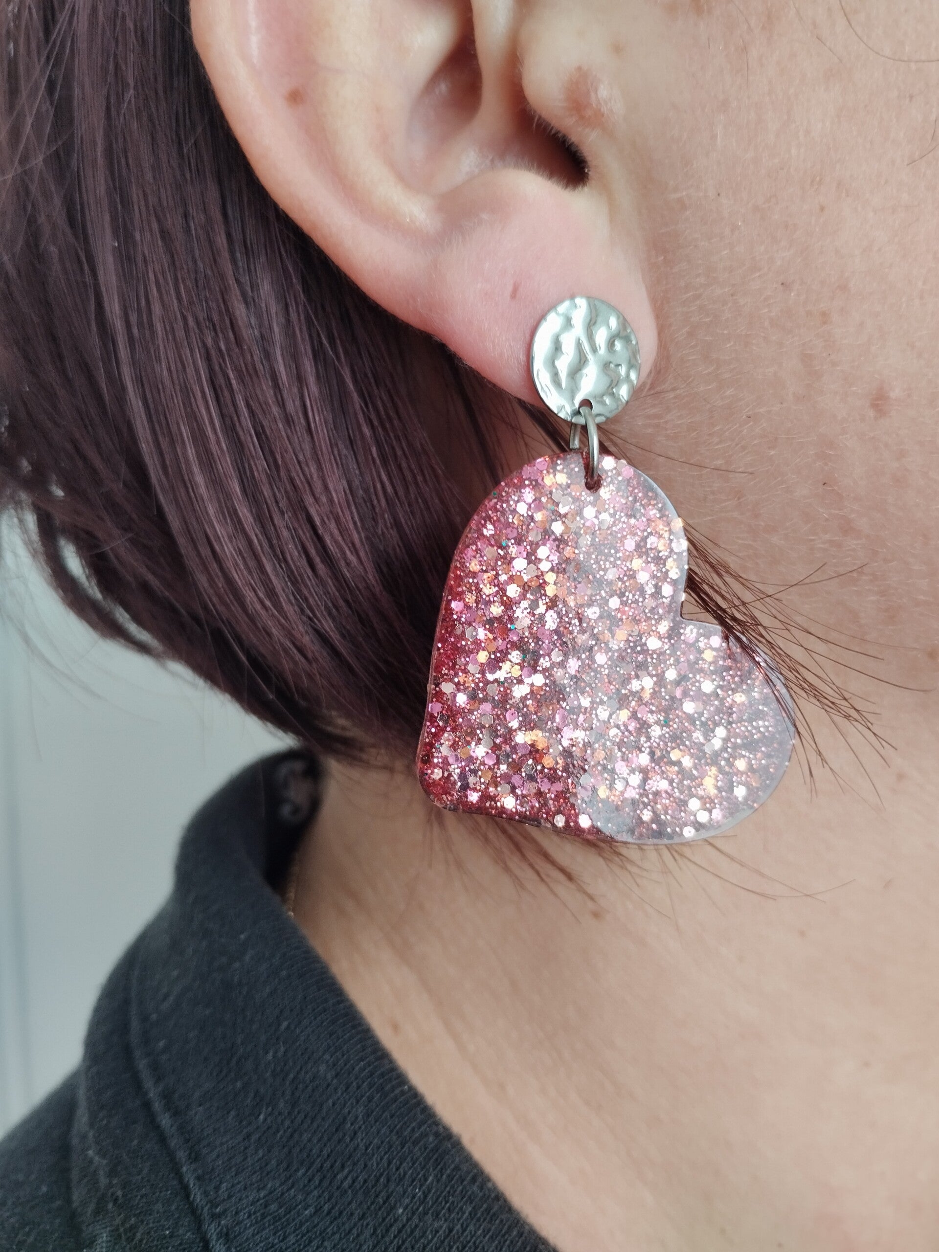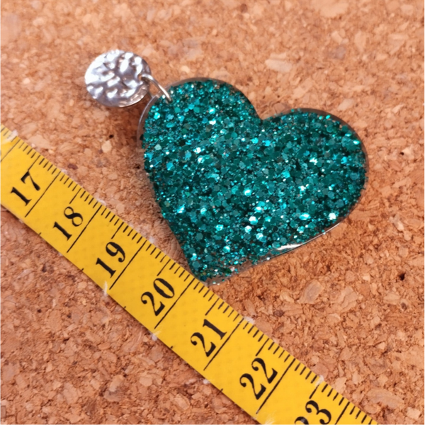 Gros coeur en paillettes ou poudre colorante 100% résine en avec petits clous doré ou argenté