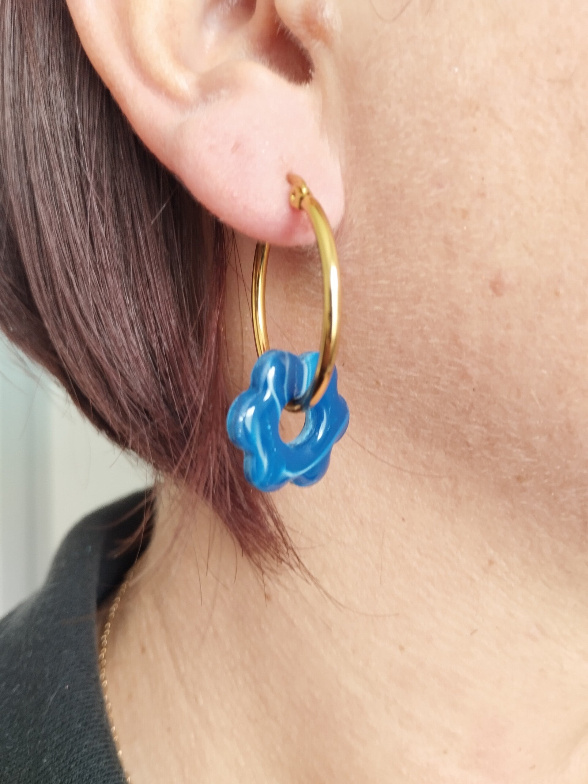 Paire de boucles d'oreilles bleu et gris avec une touche de feuille d'argent.